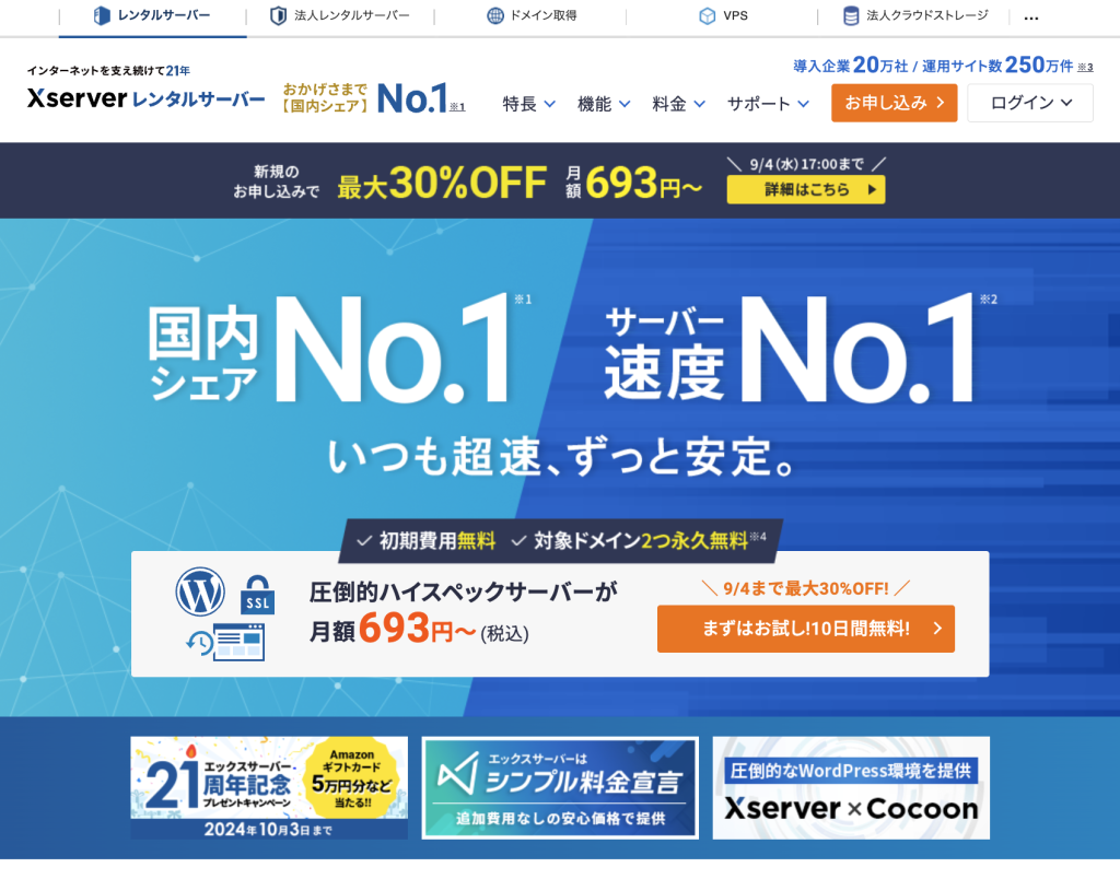 Xserverのトップページにアクセス