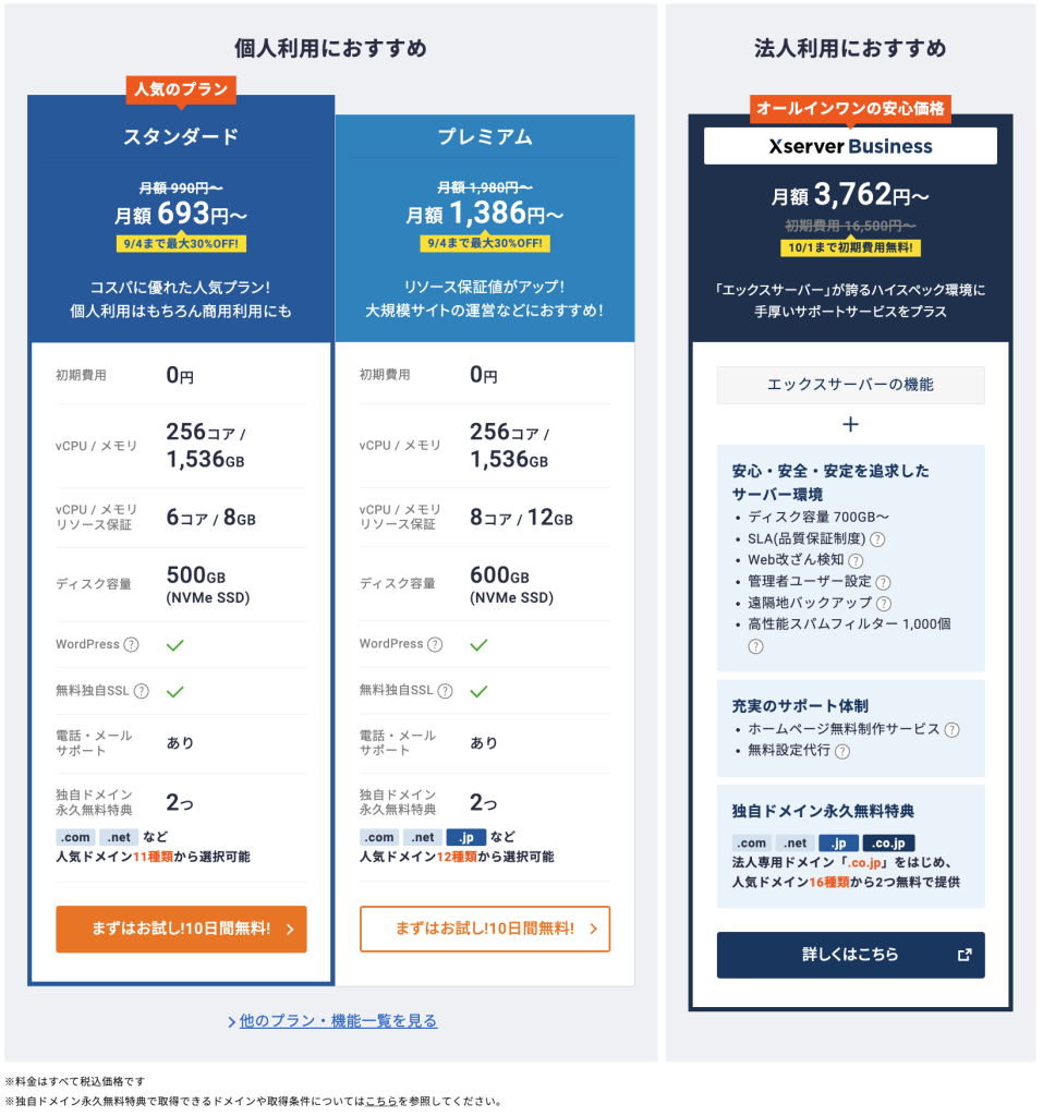 まだエックスサーバーにするか迷っている方は、先にレンタルサーバーの比較記事を読んでいただくのがよいかもしれません。結論としては「大手を選んでおけばハズレはないが、迷うならエックスサーバーが手堅い」というスタンスです。