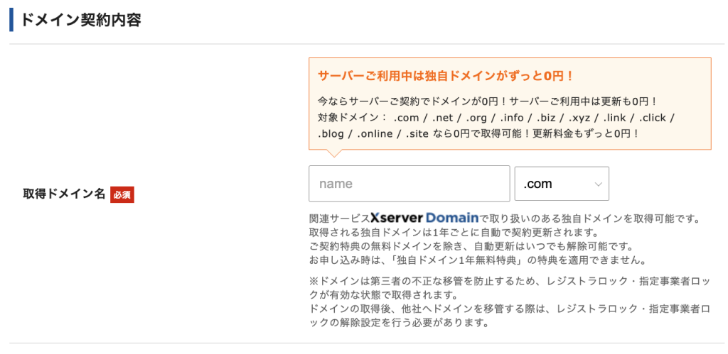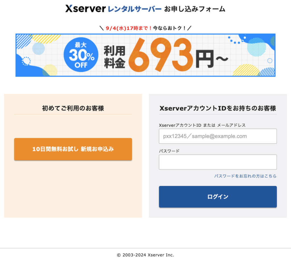 エックスサーバーの申込画面から進めます。パソコンでの操作を推奨します。