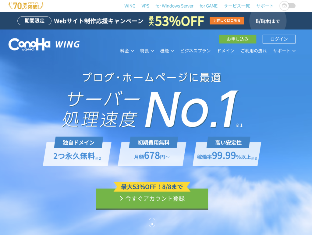 | Xserver | ConoHa WING | ラッコサーバー | |