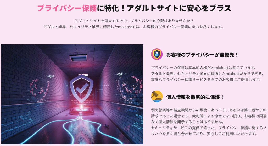 アダルトコンテンツを取り扱う場合、対応しているサーバーを選ぶ必要があります。mixhostはアダルト対応で有名です。