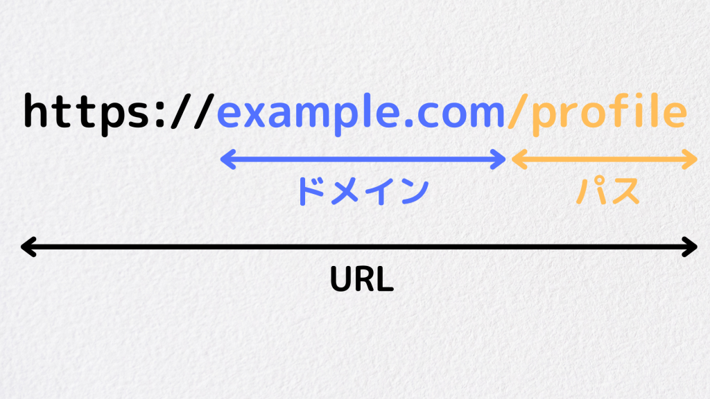 例えば、https://www.example.com/profile というURLに対しては、example.com がドメインです。URLは住所の詳細部分とするならば、ドメインはその住所のメインとなる部分と考えるとわかりやすいでしょう。